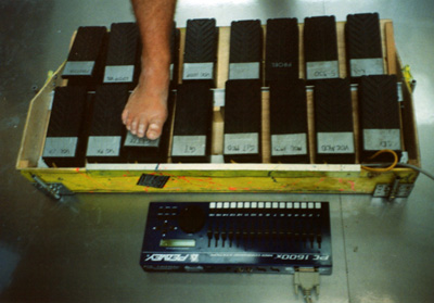 So far we have a picture of the Peavey 1600x, which he controls by foot!