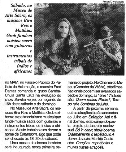 A Tarde, 24.05.01: trilha para Dança pela PAZ